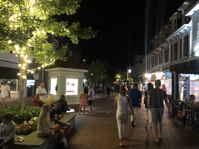 The picturesque Washington Street Mall, located in Cape May, New Jersey, includes over 75 establishments in the heart of America's original seaside resort. A variety of unique boutiques, shops, fine dining restaurants, bars, quick eats, activities, and services are located along a three block stretch of Washington Street, which is closed to vehicular traffic, as well as adjoining portions of Ocean Street, Decatur Street, Jackson Street, Perry Street, Carpenters Lane, and Lyle Lane. The Mall serves as Cape May's town square, and features numerous benches, luscious gardens, shady trees, historical markers, gas lamps, bistro-style string lights, Instagram-worthy photo opportunities, and more. Attracting not only visitors to Cape May, the Mall also attracts visitors to other Jersey Shore towns as well those from up and down the East Coast.